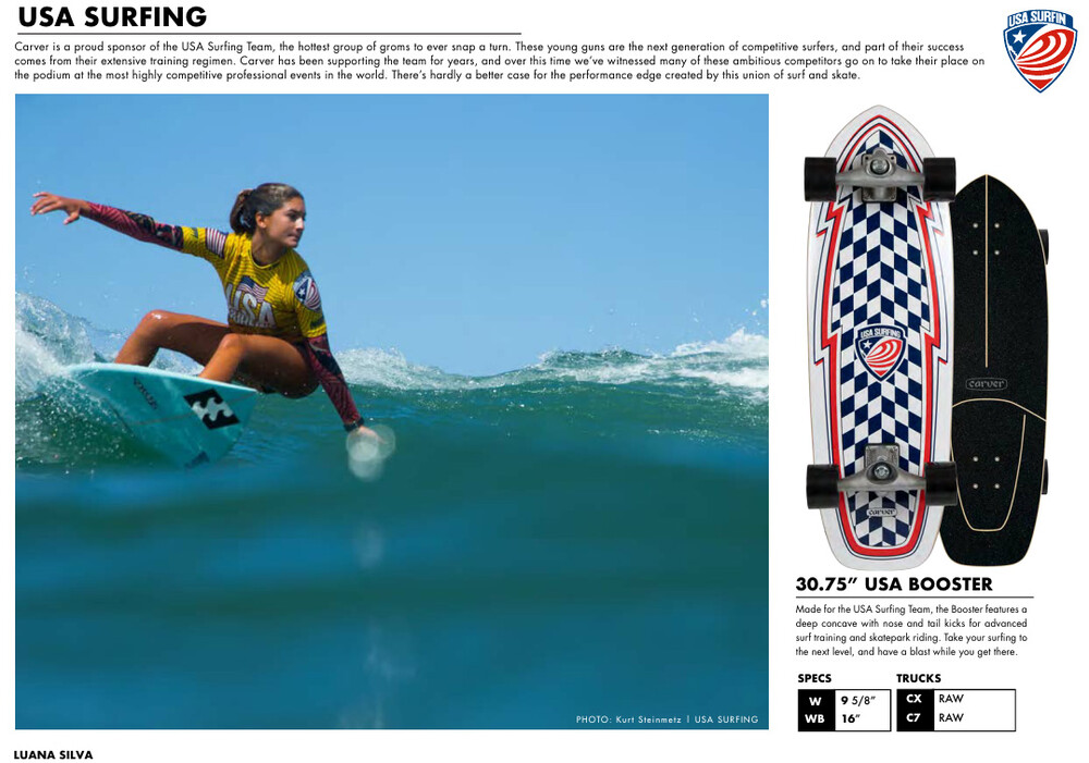 Carver는 미국에서 가장 인기 있는 유소년 서핑팀, USA Surfing Team의 스폰서입니다.