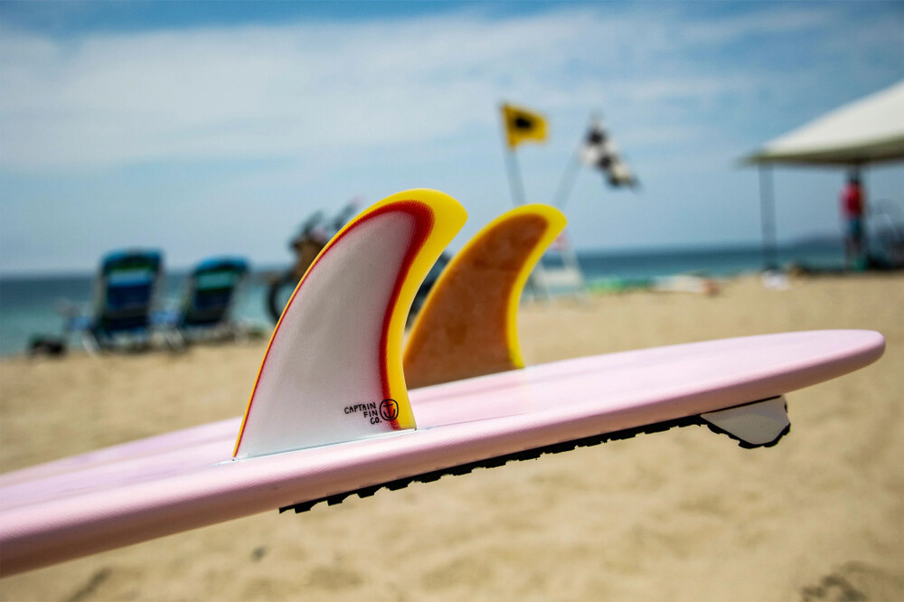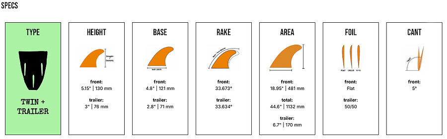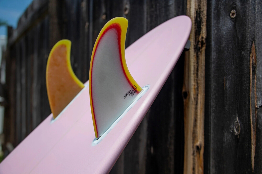 The CF Twin Acid Especial is a multi-color solid fiberglass layup and a baby bonus trailer fin that adds stability and maneuverability. Designed to be used as an alternative to traditional thrusters, this modern template with enhanced sweep and rake adds control and drive your performance twin or hybrid surfboards.
