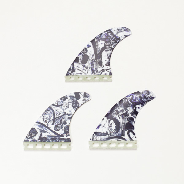 The Chemistry surfboard fin was designed by the Chem Crew with art by Paser.