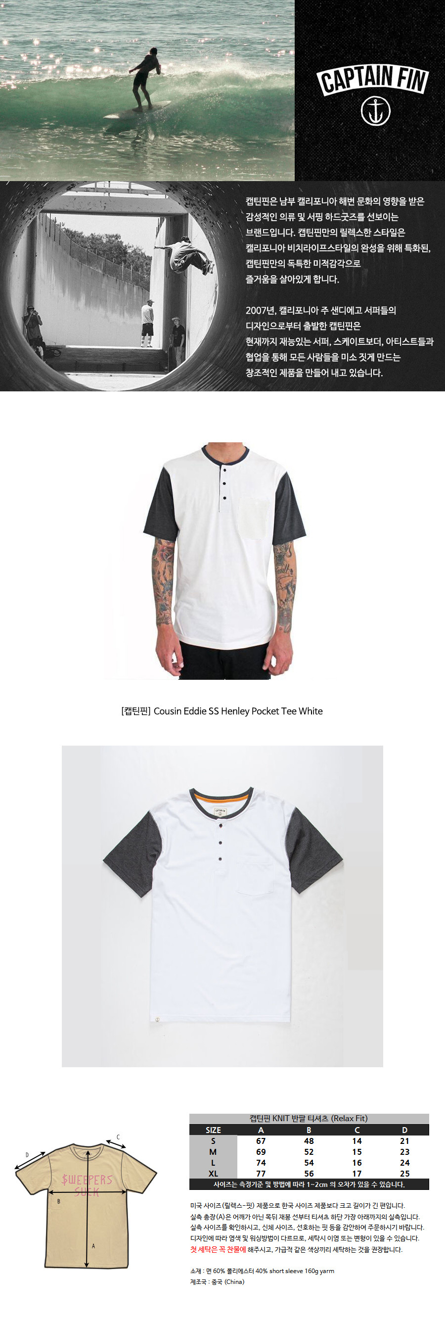 [캡틴핀] 커즌 에디 헨리넥 포켓티셔츠 Captainfin Cousin Eddie Henley Poket Tee White