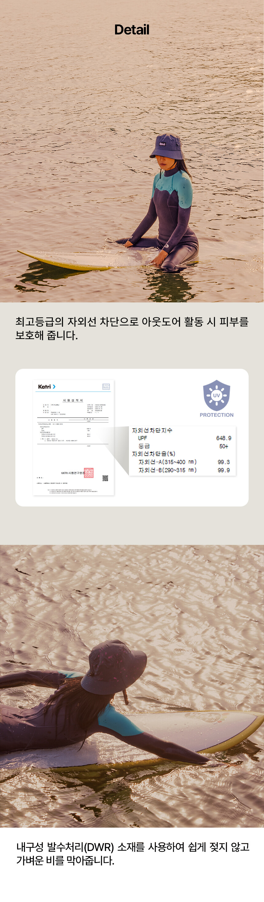 주요소재 : 나일론 100% (DWR 발수코팅 처리원단)