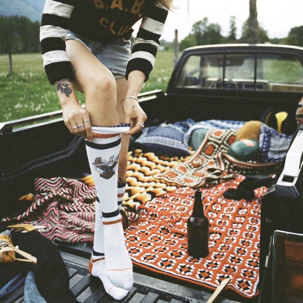 And since they're cut to fit feminine feet, now you don't have to be the old lady to fit in with the gang. Stance's Davidson sock is born for the road, but built for a babe.