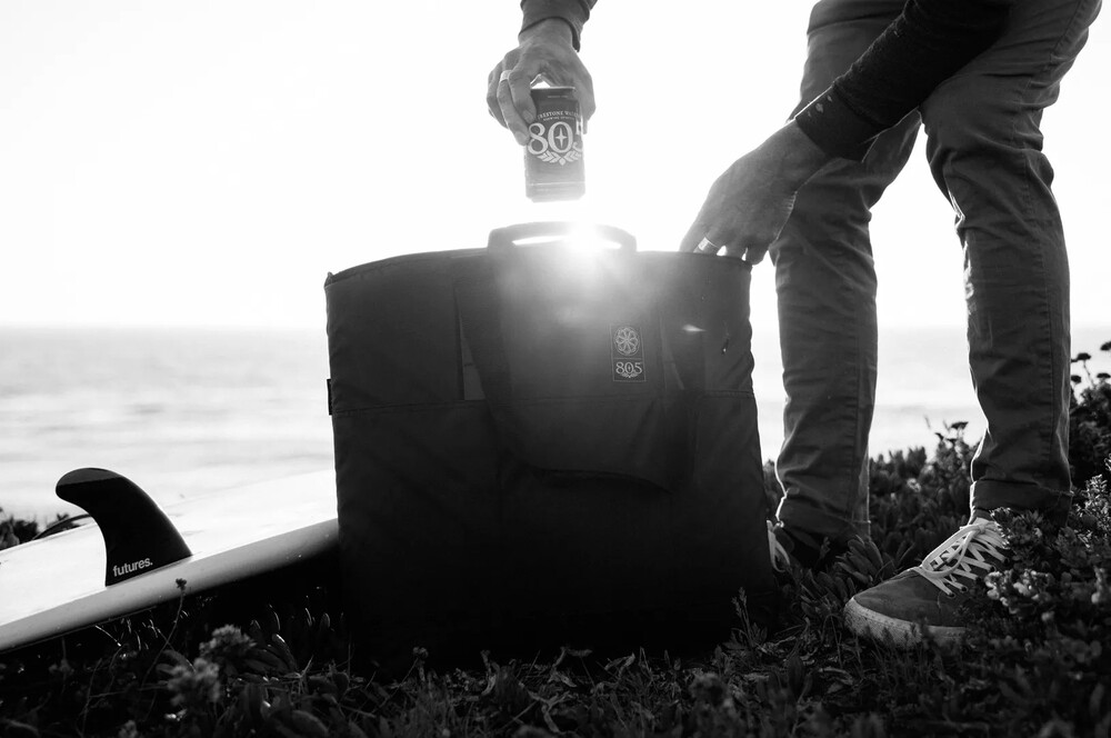 Finally! In collaboration with 805 Beer, we made an insulated cooler bag that won’t get you laughed at by your friends in the parking lot. With a coated Nylon exterior, water resistant ziptop closure, front exterior dry storage pockets and an insulated waterproof interior envelope, IZOT will keep your beers properly chill until you're done shredding.