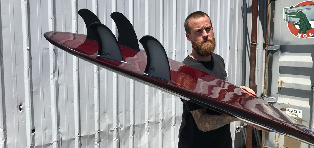 The Jeff McCallum Quad Especial is part of our Limited La Especial Collection. It's a multi-color, solid fiberglass layup. Master surfboard craftsman Jeff McCallum translated his design prowess into this medium-sized quad fin built for speed with a stiffer build. All four fins have a flat inside foil generating maximum drive down the line. Great for your retro fishes, hybrids and wide squash tail boards.
