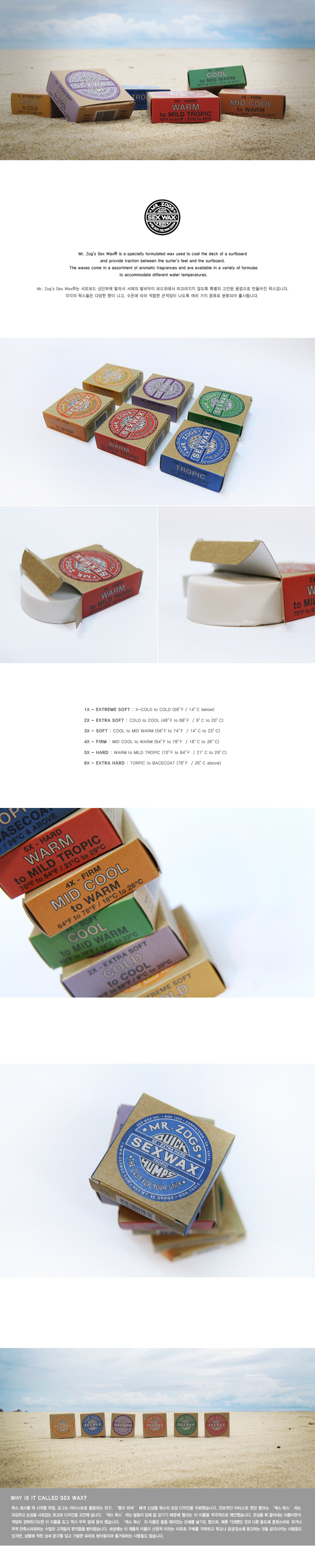 * 6x Blue : TROPIC / BASE COAT (26도 이상) : 가장 하드한 왁스로 최초 왁싱시 베이스코트로 사용