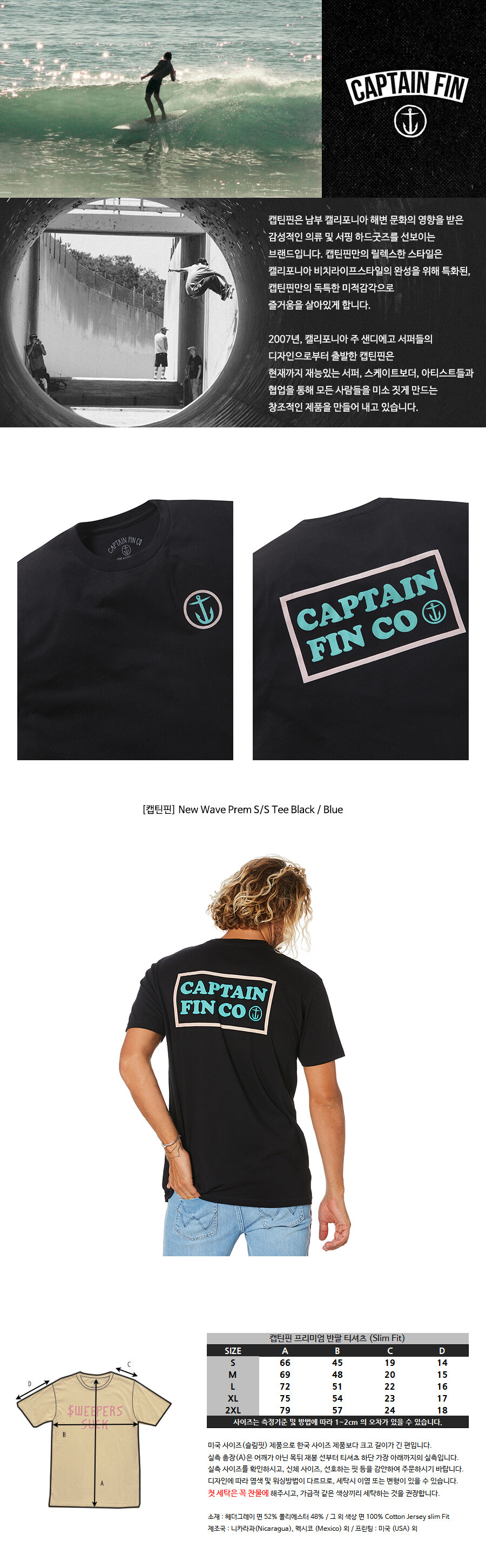 [캡틴핀] 뉴 웨이브 반팔티셔츠 Captainfin New Wave Logo Black Blue Tee