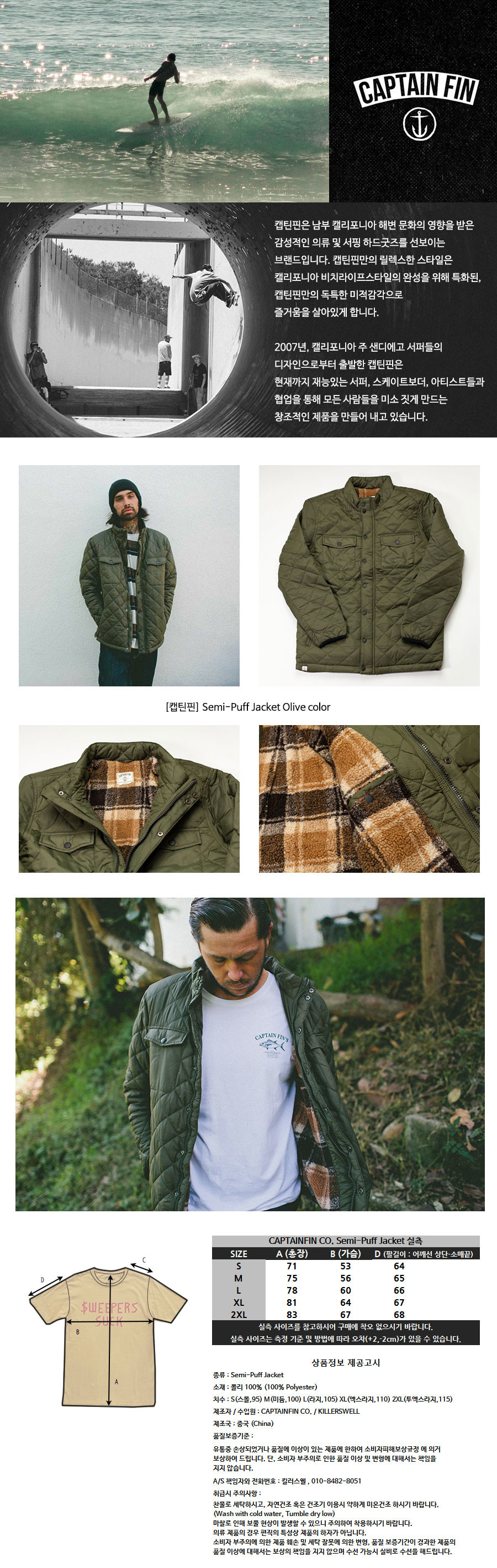*캡틴핀 "Semi Puff Jacket" Olive / Brown(안감) 제품은 미국 오버핏 사이즈로 제작되어