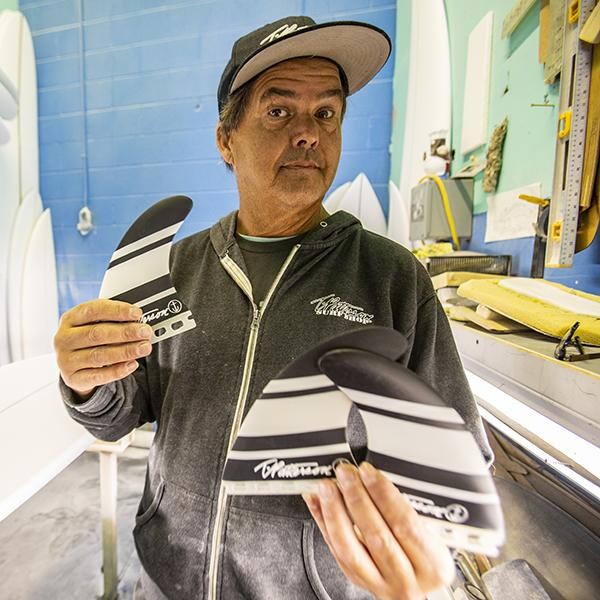 It’s a one size, medium/large size fin that fits just about anyone in almost all conditions. As a second generation shaper raised in the surfboard factories, his career began making fins in the glass shops.