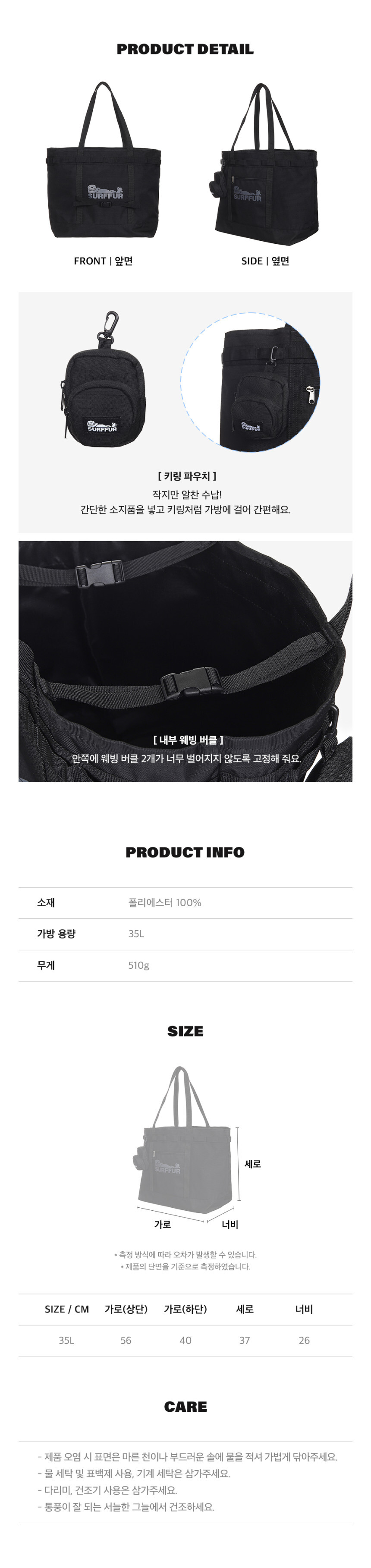 [서프퍼] SURFFUR 어드벤처 토트백 35L Water Repellent 생활 발수