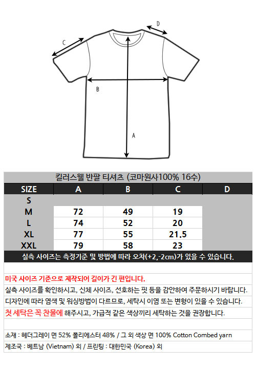 *화이트(킬러스웰 자체제작) / 블랙(BEETEE Men 기본티셔츠)