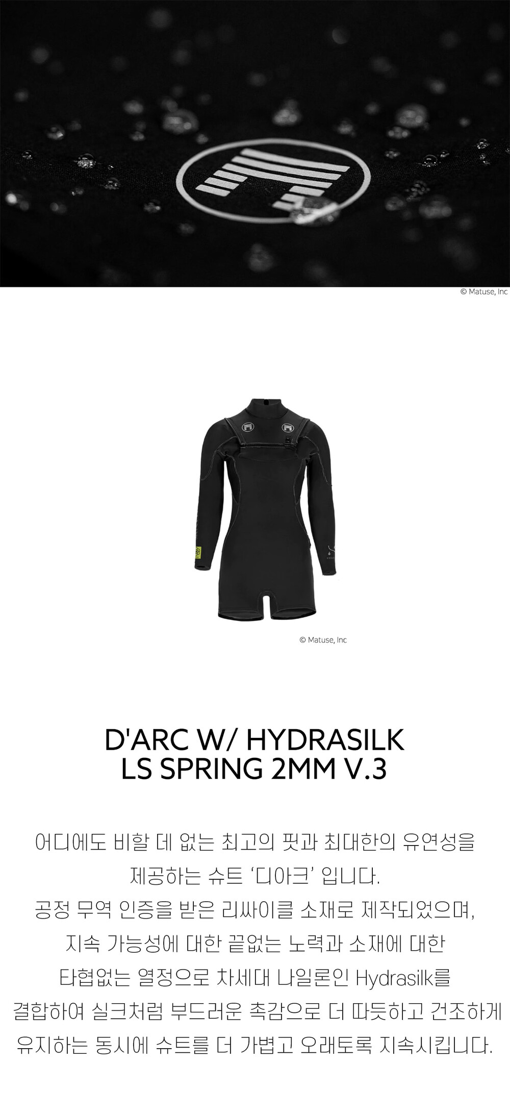 [매튜스] 디아크 2mm 여자 긴팔반바지 스프링슈트 V3 D'ARC Women 2mm CHEST ZIP SPRING SUIT