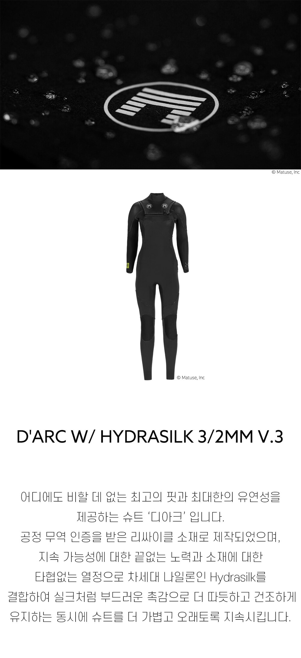 [매튜스] 디아크 하이드라실크 3/2mm Matuse D'ARC 3/2mm 여자 FULLSUIT V3