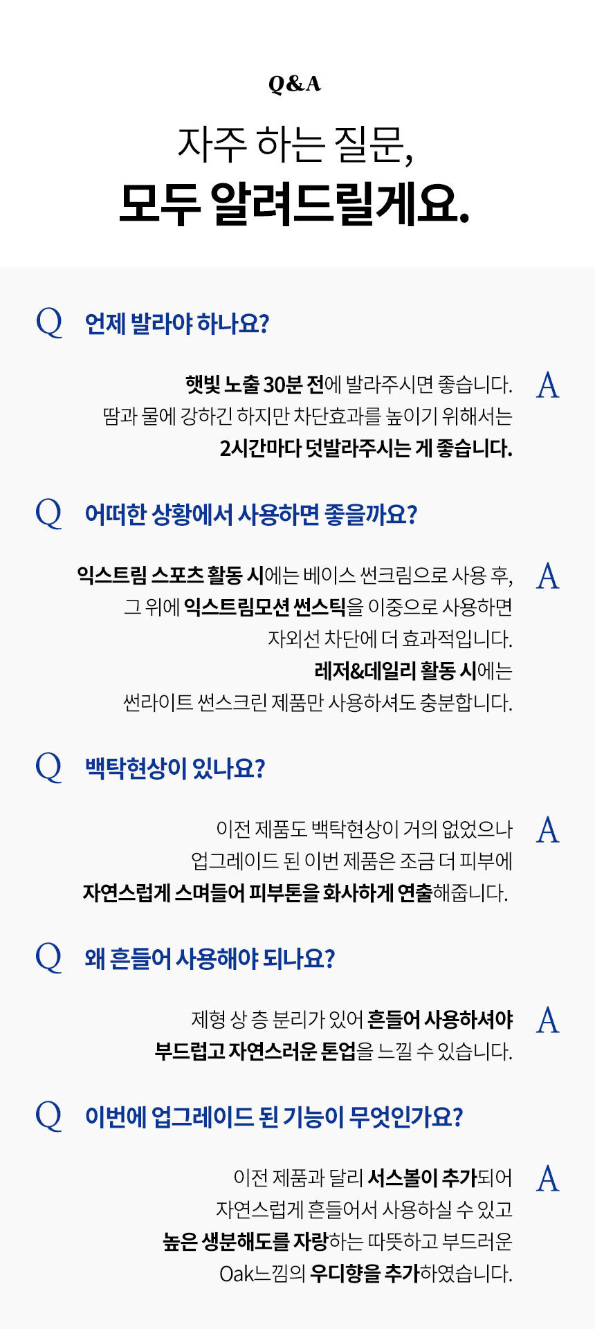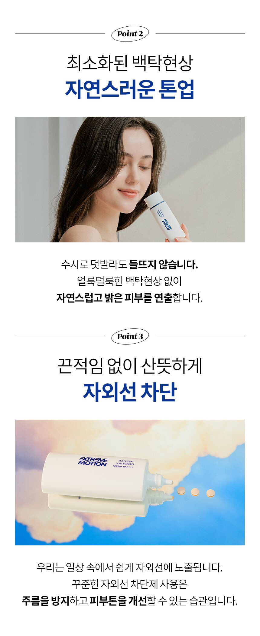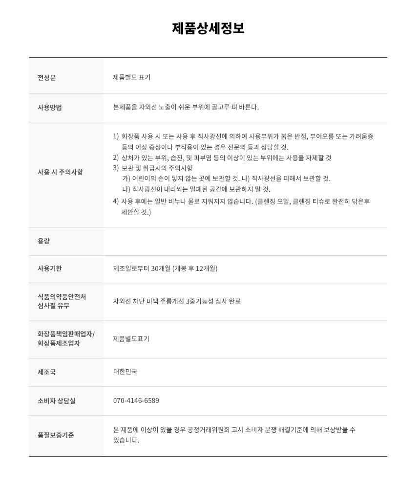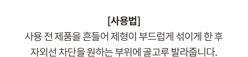 3. 강력한 자외선 차단 성능으로 사용후에는 일반 비누나 세안제, 물로는 지우기가 힘듭니다. 꼭 클렌징 오일, 클렌징 티슈로 완전히 닦은 후 세안하시기 바랍니다.