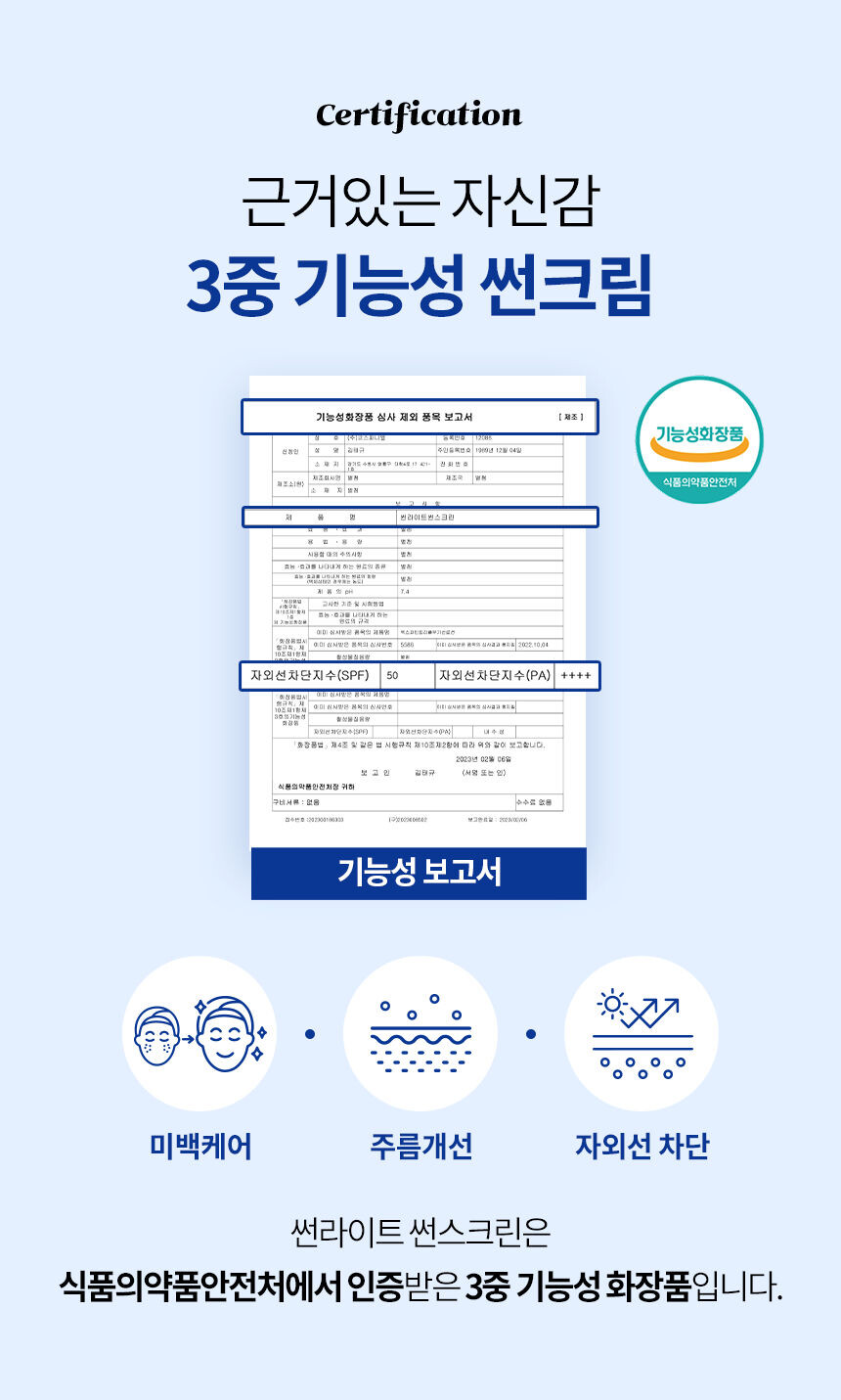 자외선으로부터 피부를 보호합니다. (SPF 50+ , PA++++)