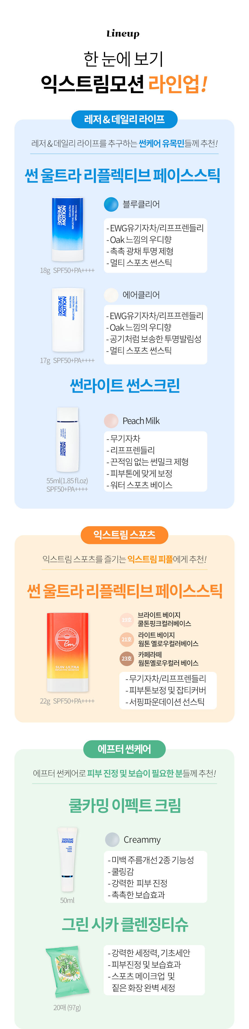 # 모든 선스틱 3개 이상 구매시 '익스트림모션' 클렌징티슈(20매) 증정