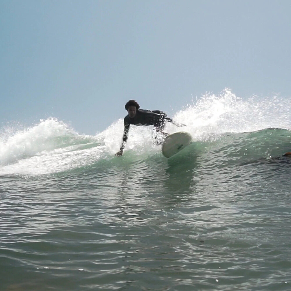 The Mikey February Single Fin comes in two sizes and was made for stylish surfing on any size single or mid-length setup. Solid fiberglass layup with white/tan color-way and emblazoned with Mikey's signature.