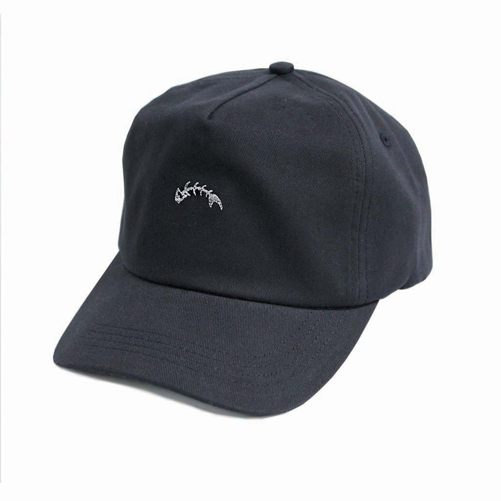 생선 뼈를 자수로 디자인한, 네이비 컬러 워싱된듯한 느낌의 심플한 모자입니다.