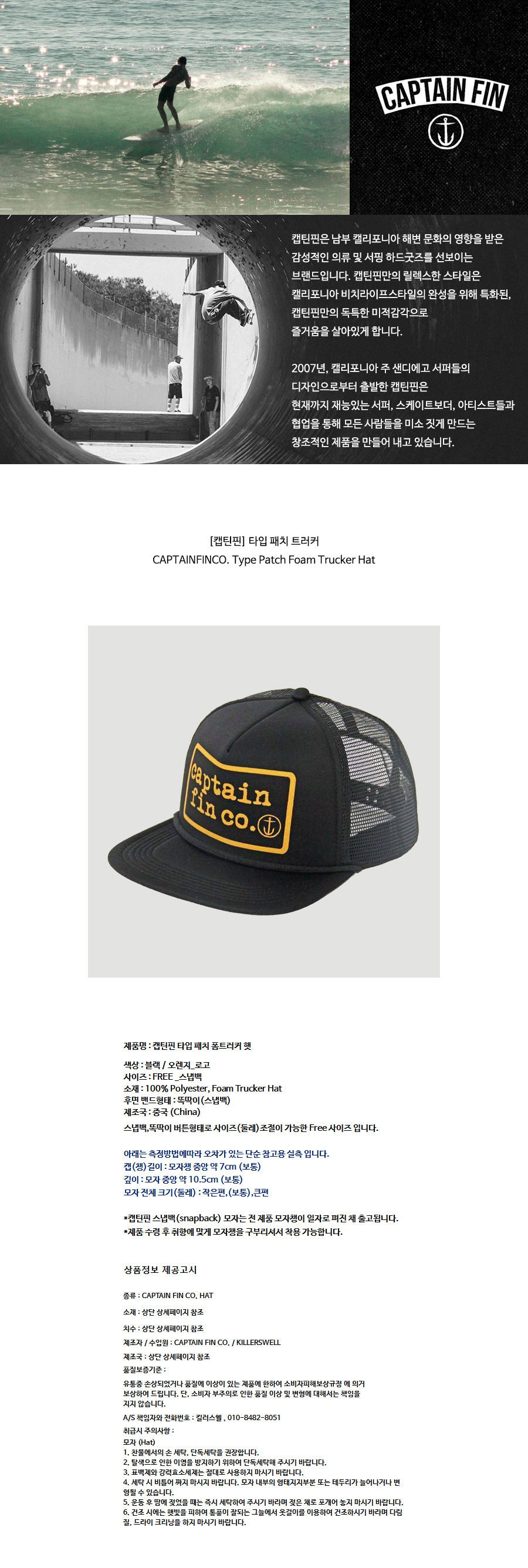 [캡틴핀]모자 Type Patch Foam Trucker Hat 타입패치 메쉬캡